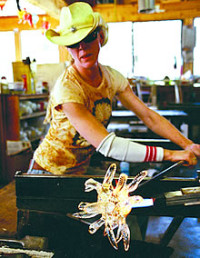 New Mexico Experimental Glass Workshop in Santa Fe uses recycled glass to make amazing glass sculptures (above pieces by Stacey Neff, director). Check out their video stream of the glass recycling process http://nmegw.org/recycling.php